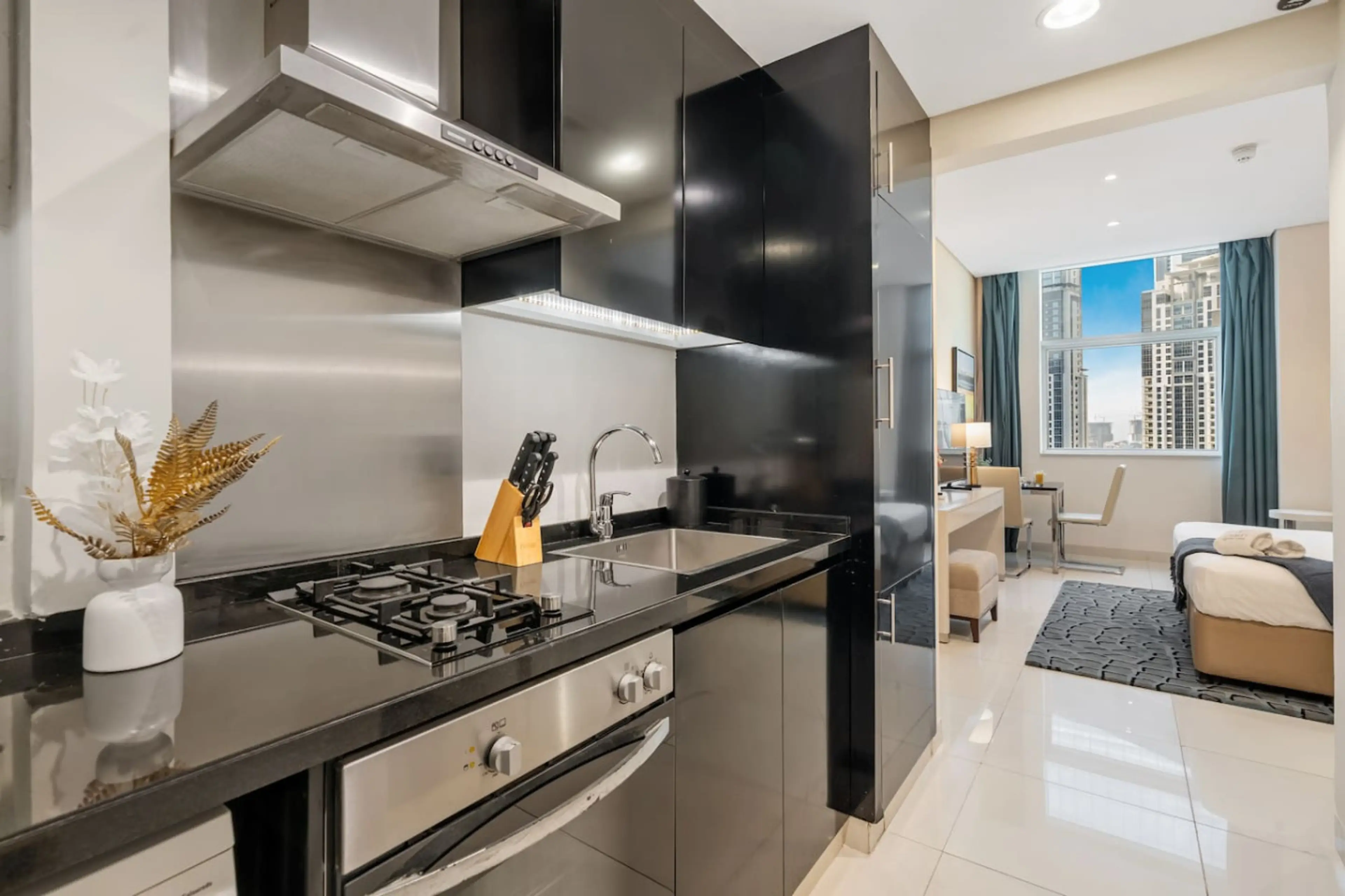Welcome to your luxurious studio apartment in DAMAC Cour Jardin, located in the heart of Business Bay, Dubai — just minutes away from Downtown, Burj Khalifa, and Dubai Mall. This stylish retreat offers comfort, convenience, and elegance — perfect for both business travelers and holiday guests lookin...